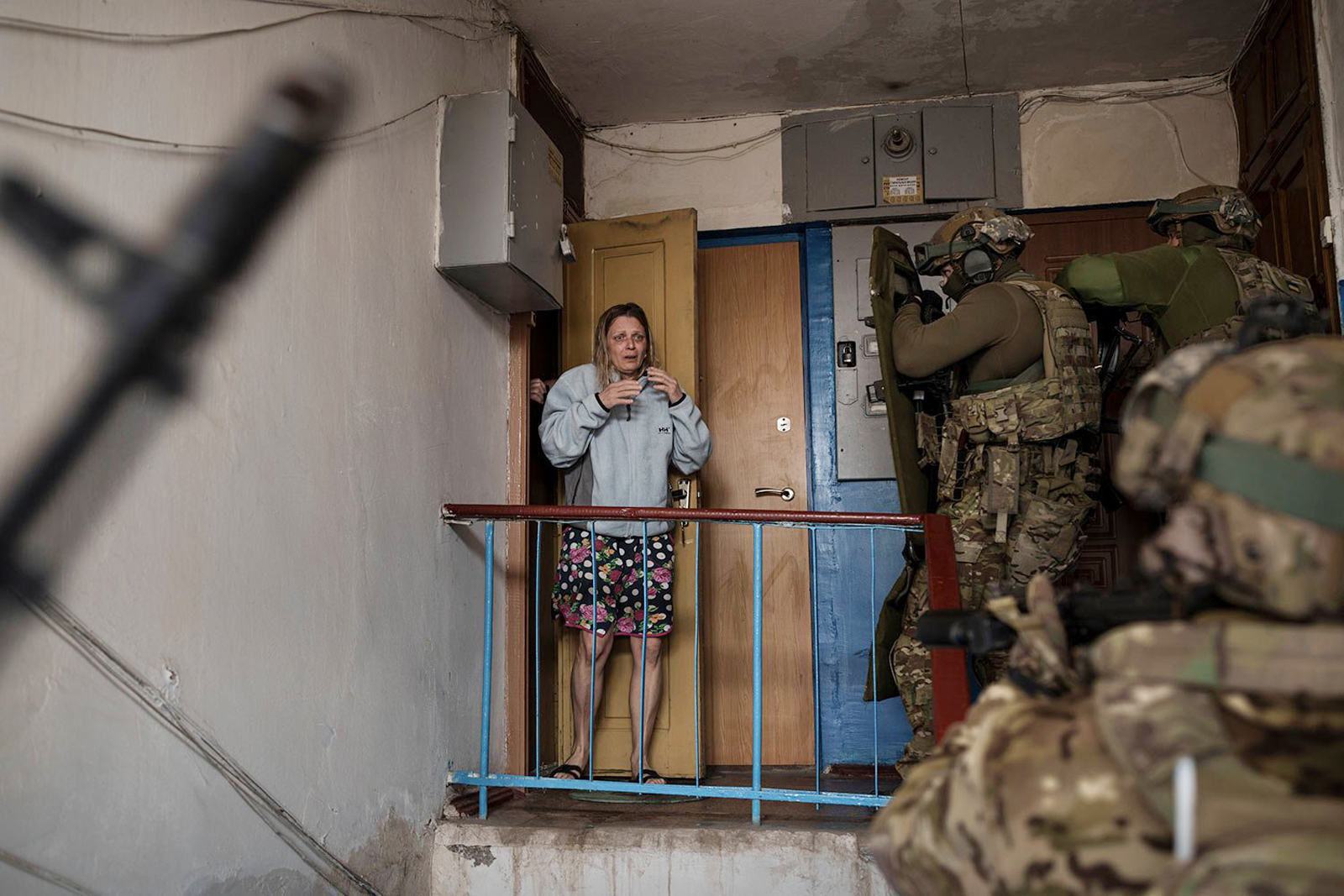 In places regained by the Ukrainian army, police units look for saboteurs and collaborators, search for abandoned weapons and clear roads. The man has a winter hat... Read more.
