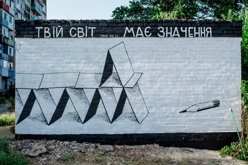 It was scorching hot that day, so Hamlet, 35, pulled a T-shirt over his head. Until the very end, he does not reveal what slogan will accompany the work. It is an integral part of his art. Behind our backs is another Hamlet work: a blazing sun with the inscription: “From the sun I learn to not burn out.” It is dedicated to volunteers, often friends of the artist. It is an appeal not to give up, because—as he says—they must last until victory. There is a common belief among Ukrainians that this will be a long war, so you have to measure your energy. This is not the sprint expected in the early days of the invasion, but a marathon.