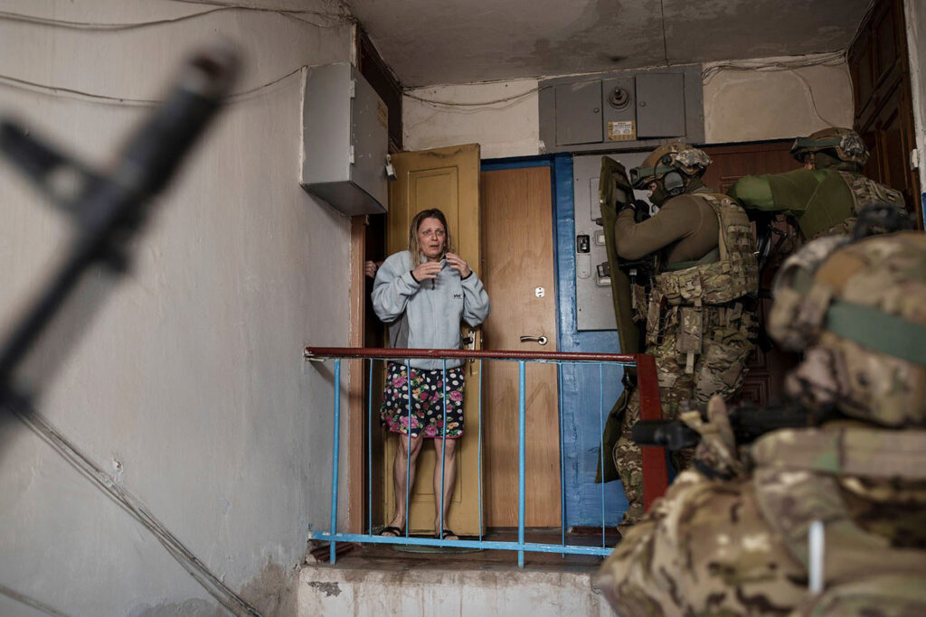 One of the neighbors apparently reported on the inhabitants of the street. She walked with the militants and showed them house after house. She was particularly keen on Vasylyna, 62, who was an easy target because she was born in Transcarpathia in western Ukraine and her two children serve in the Ukrainian police. Armed men raided her house several times. “We will find your children and shoot them, and you will also be punished for being a Banderite,” they told her. Vasilyna burst into tears and trembled with fright.