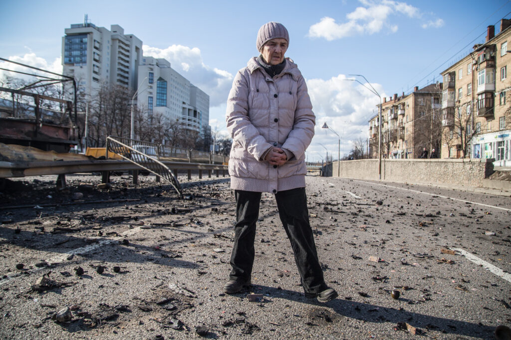 Ukrainian soldiers appeared near Svitlana’s house in the morning. They set up a checkpoint. The woman breathed a sigh of relief when she saw them. She did not want to remain indifferent so she went out to help them. “I and other residents immediately started bringing them tea and coffee, and bags of food. They say what they need and we bring it,” she says, her eyes still glazed over. “My impact is tiny, but I do what I can.”